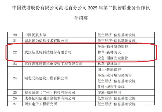 斯艾特科技成功入選中國(guó)鐵塔湖北分公司智聯(lián)業(yè)務(wù)合作伙伴